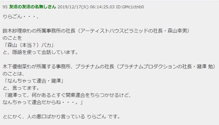 ★ 『芸能人』気取りしたがる河南りら(りらごん)